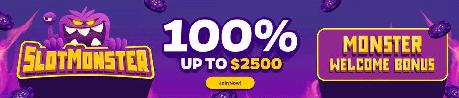 - Play with double – Your deposit will be instantly matched 100%, giving you up to $2,500 in bonus funds to explore the massive SlotMonster game lobby, from slots and live casino games to sports betting.