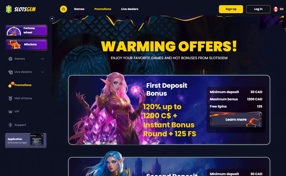Want to get the most out of your offer? A 500 CAD deposit will give you a total casino balance of $850 CAD, a perfect way to continue your SlotsGem adventure with extra power behind every spin!