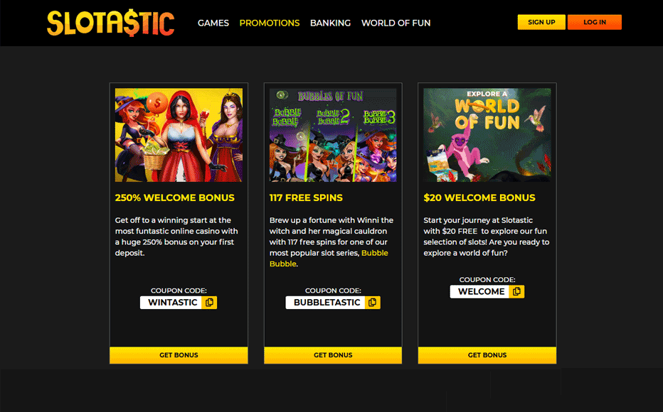 Slotastic welcome bonus – get a 250% deposit match